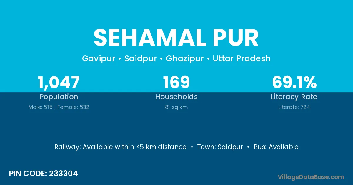 Sehamal Pur village has a total population of 1,047 people, of which 515 are males and 532 are females.