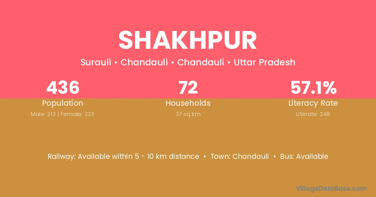 The literacy rate of Shakhpur village is 66.51%. Male literacy stands at 72.09% and female literacy at 60.47%.