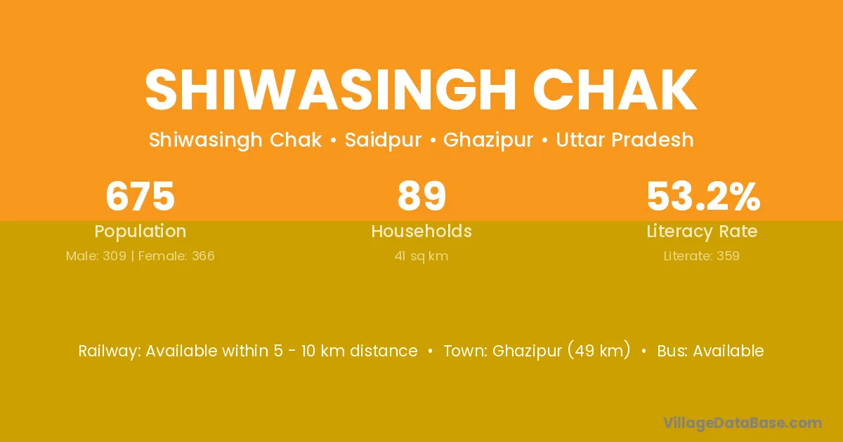 Ghazipur (49 km) is the nearest town to Shiwasingh Chak village for major economic activities and is located approximately 49 km away.