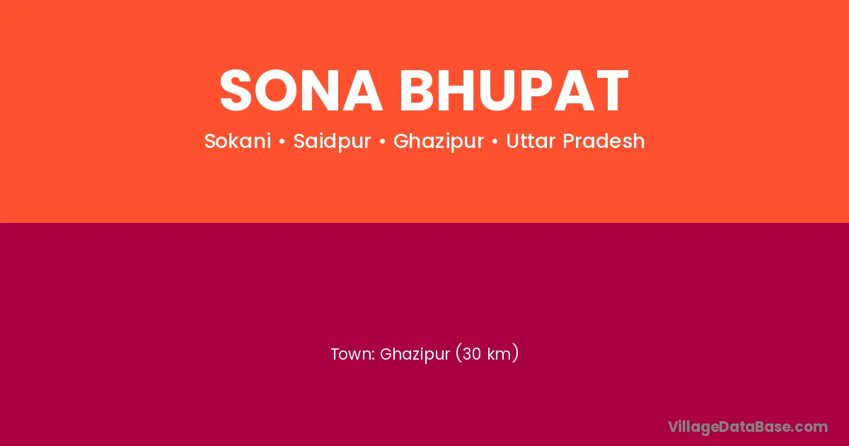 Ghazipur (30 km) is the nearest town to Sona Bhupat village for major economic activities and is located approximately 30 km away.