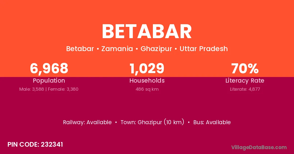 Ghazipur (10 km) is the nearest town to Betabar village for major economic activities and is located approximately 10 km away.