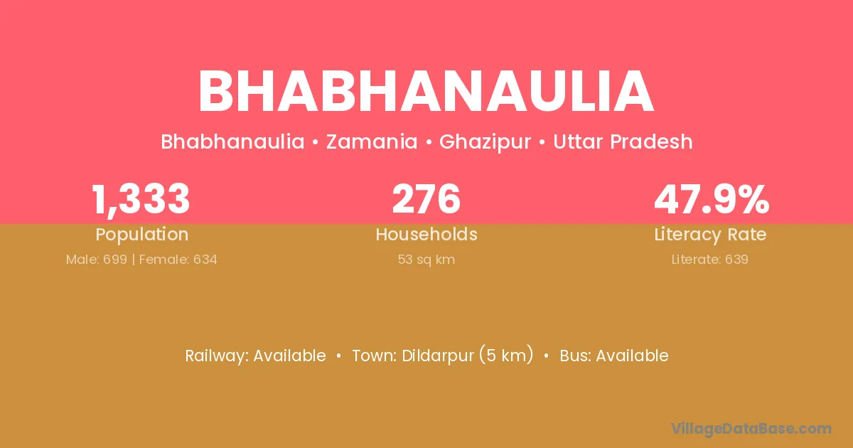 Dildarpur (5 km) is the nearest town to Bhabhanaulia village for major economic activities and is located approximately 5 km away.
