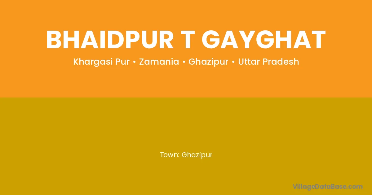 Bhaidpur T Gayghat village is located in the Zamania Tehsil of the Ghazipur district in Uttar Pradesh .