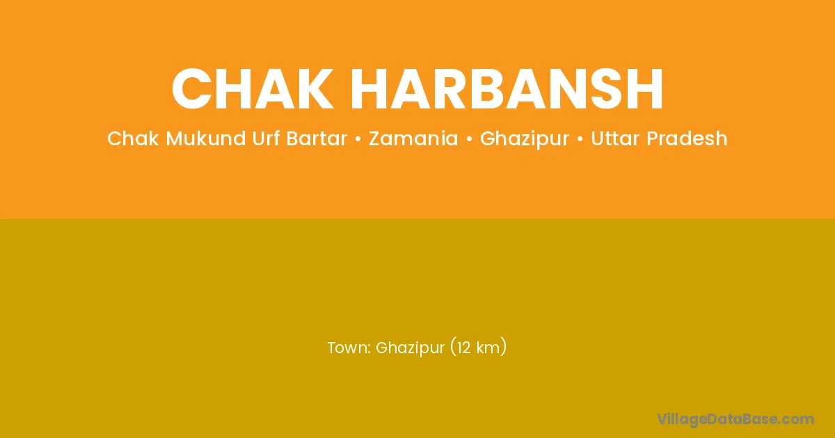 Ghazipur (12 km) is the nearest town to Chak Harbansh village for major economic activities and is located approximately 12 km away.
