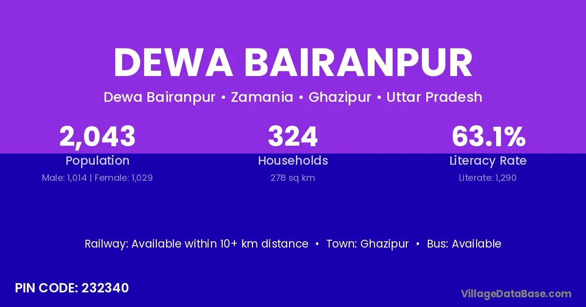 Ghazipur is the nearest town to Dewa Bairanpur village for major economic activities