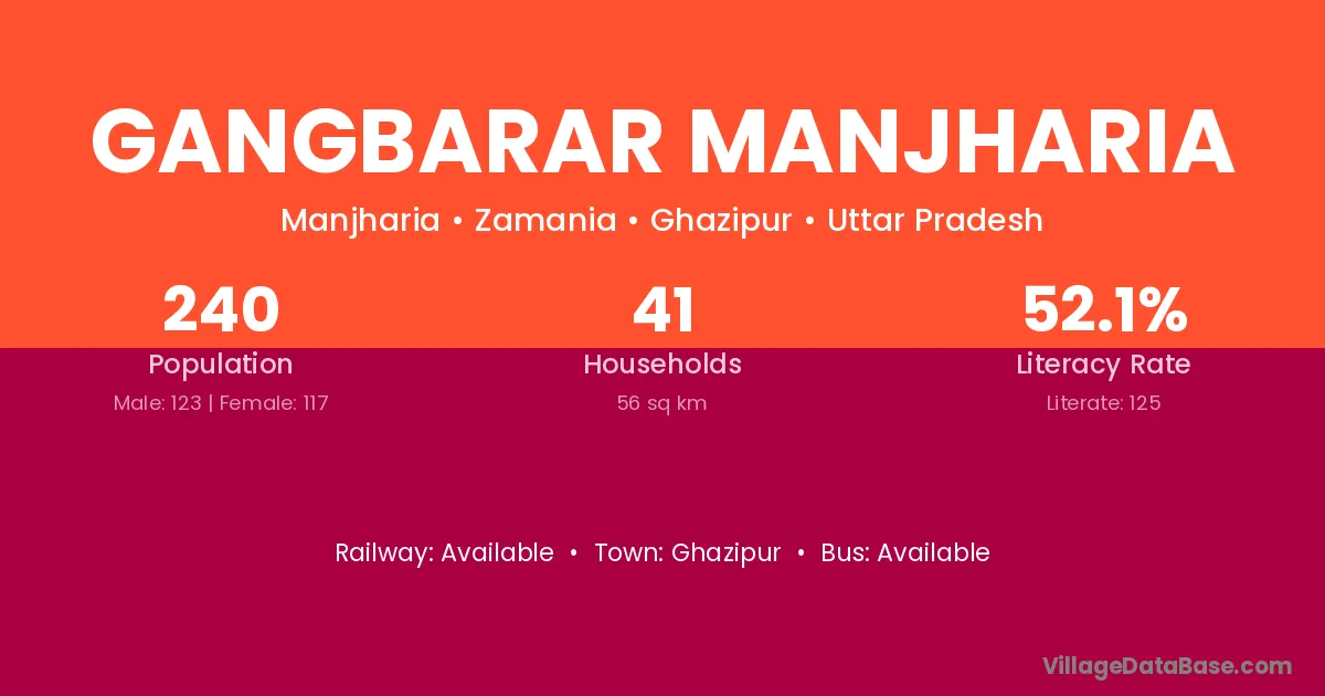 Gangbarar Manjharia village has a total population of 240 people, of which 123 are males and 117 are females.