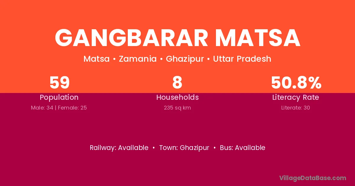 Gangbarar Matsa village is located in the Zamania Tehsil of the Ghazipur district in Uttar Pradesh .
