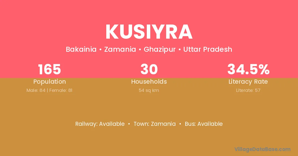 Kusiyra village has a total population of 165 people, of which 84 are males and 81 are females.