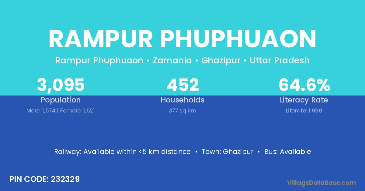 Ghazipur is the nearest town to Rampur Phuphuaon village for major economic activities