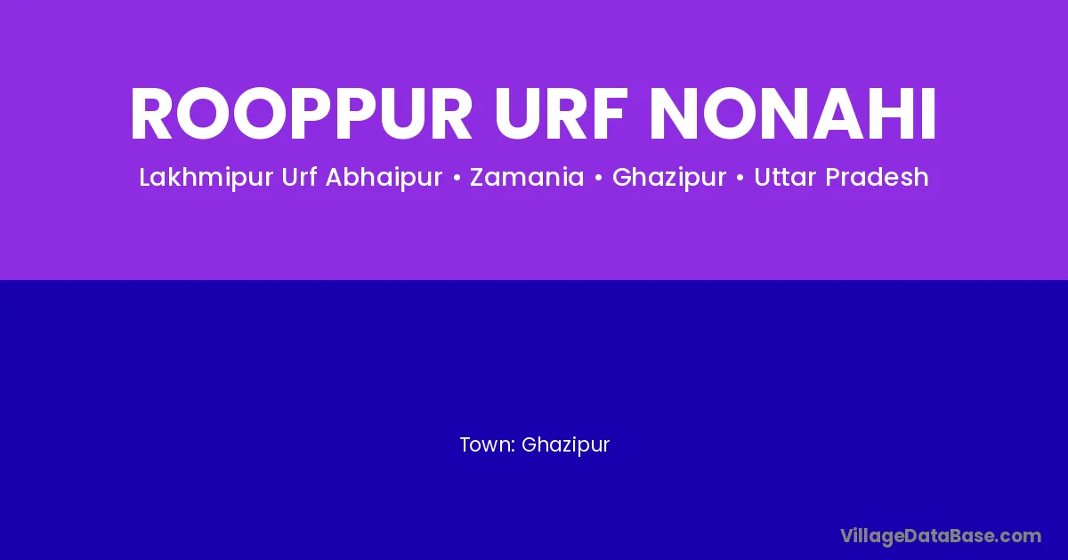 Rooppur Urf Nonahi village is located in the Zamania Tehsil of the Ghazipur district in Uttar Pradesh .