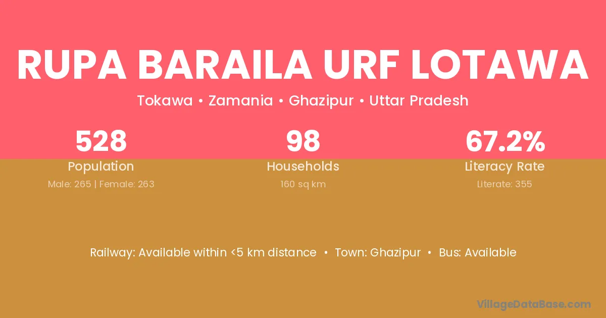 Rupa Baraila Urf Lotawa village has a total population of 528 people, of which 265 are males and 263 are females.