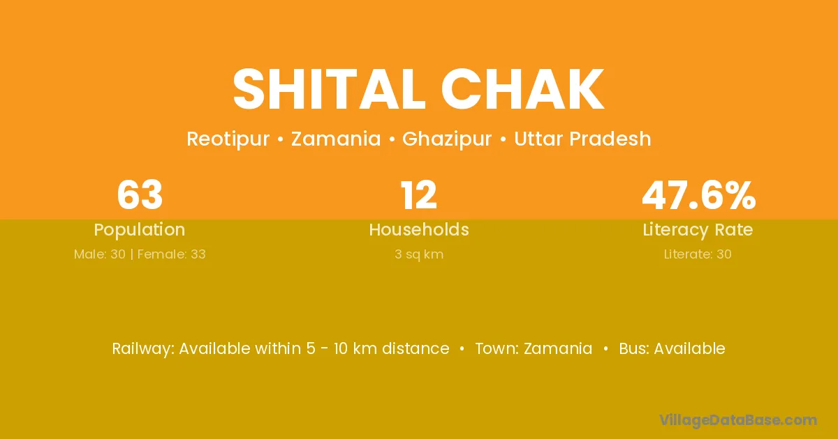 Shital Chak village has a total population of 63 people, of which 30 are males and 33 are females.