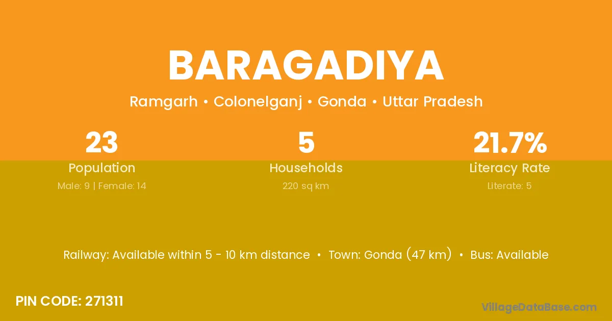 Gonda (47 km) is the nearest town to Baragadiya village for major economic activities and is located approximately 47 km away.