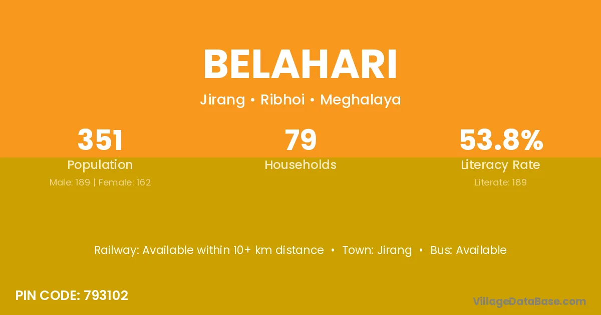 Belahari village has a total population of 1,906 people, of which 997 are males and 909 are females.