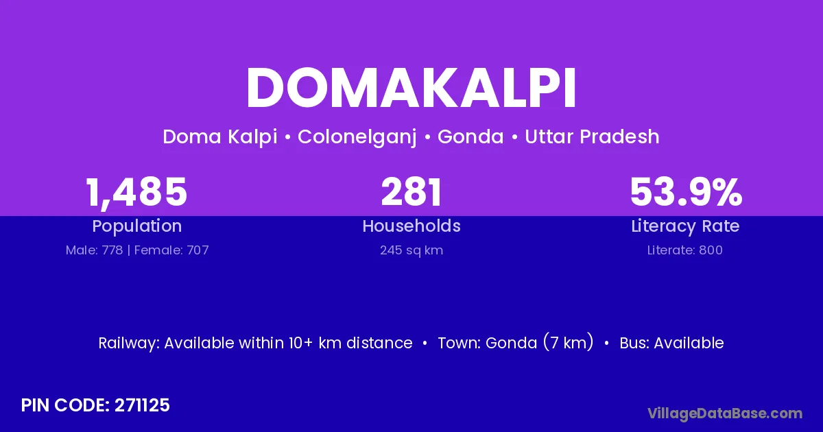Gonda (7 km) is the nearest town to Domakalpi village for major economic activities and is located approximately 7 km away.
