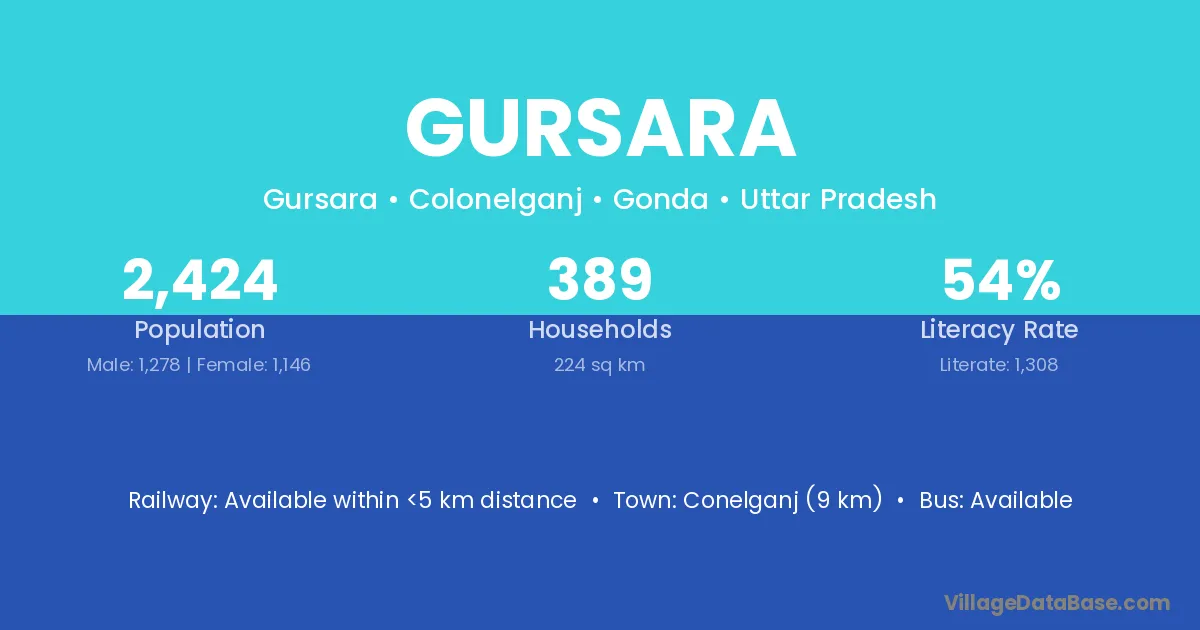 Conelganj (9 km) is the nearest town to Gursara village for major economic activities and is located approximately 9 km away.