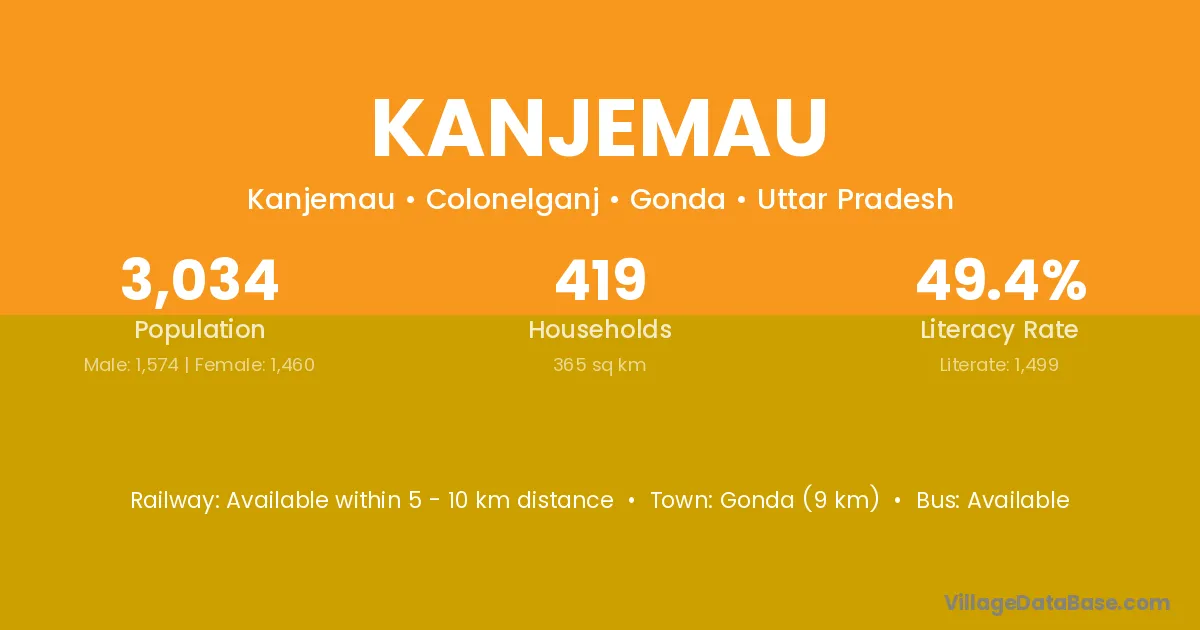 Gonda (9 km) is the nearest town to Kanjemau village for major economic activities and is located approximately 9 km away.