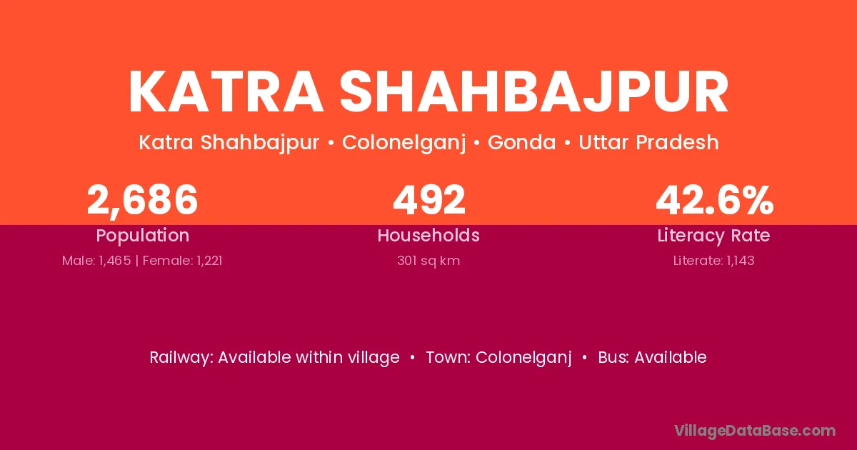 Katra Shahbajpur village has a total population of 2,686 people, of which 1,465 are males and 1,221 are females.