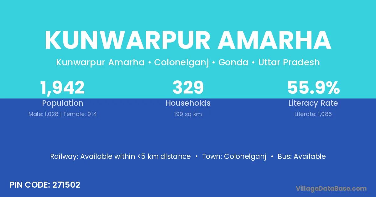 Kunwarpur Amarha village has a total population of 1,942 people, of which 1,028 are males and 914 are females.
