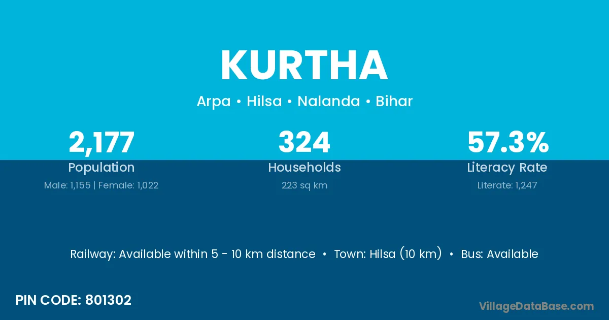 Kurtha village has a total population of 1,458 people, of which 801 are males and 657 are females.