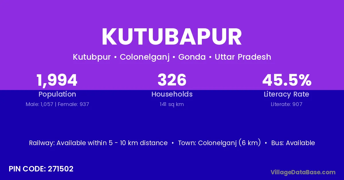 According to Census 2011 information, the village code of Kutubapur village is 271502.