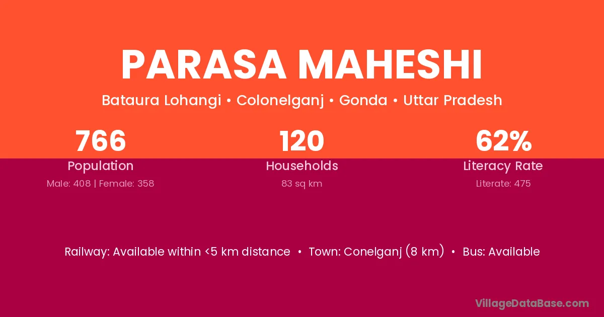 Parasa Maheshi village has a total population of 766 people, of which 408 are males and 358 are females.