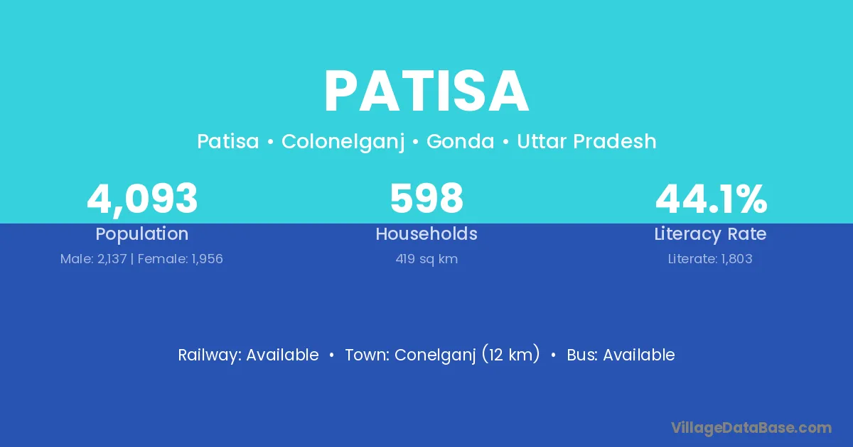 Conelganj (12 km) is the nearest town to Patisa village for major economic activities and is located approximately 12 km away.