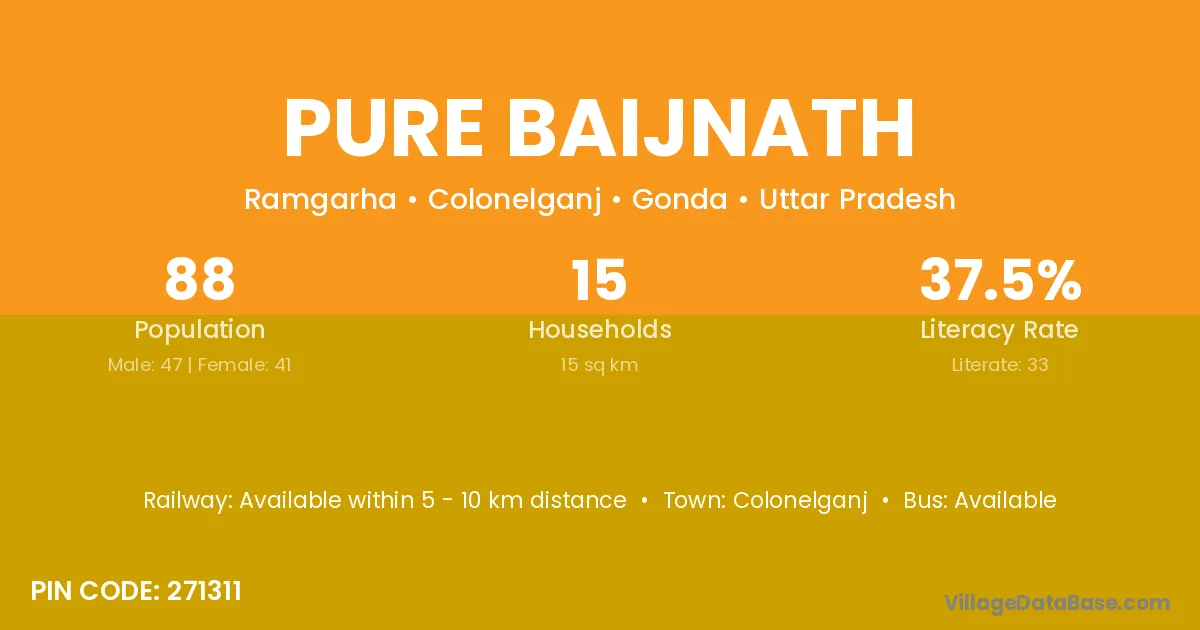 The literacy rate of Pure Baijnath village is 37.50%. Male literacy stands at 48.94% and female literacy at 24.39%.