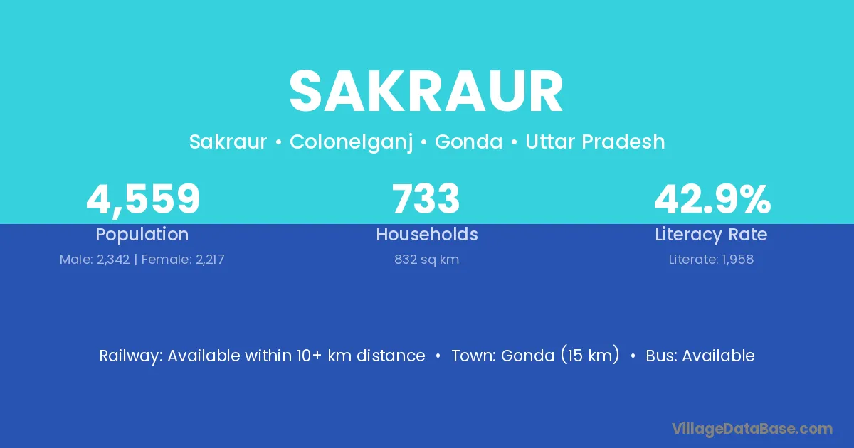 Gonda (15 km) is the nearest town to Sakraur village for major economic activities and is located approximately 15 km away.