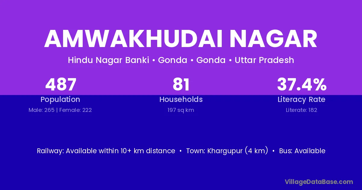 Khargupur (4 km) is the nearest town to Amwakhudai Nagar village for major economic activities and is located approximately 4 km away.