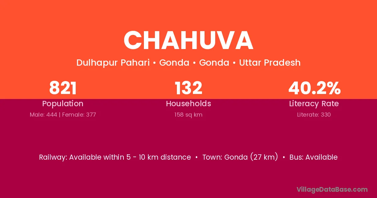 Gonda (27 km) is the nearest town to Chahuva village for major economic activities and is located approximately 27 km away.