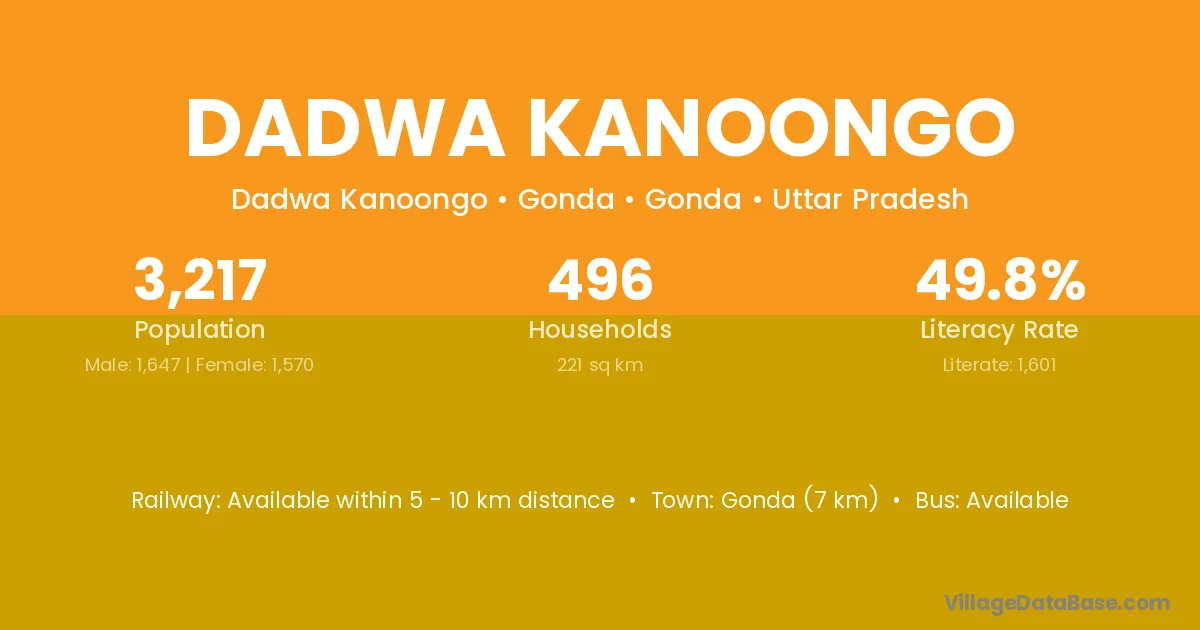 Gonda (7 km) is the nearest town to Dadwa Kanoongo village for major economic activities and is located approximately 7 km away.