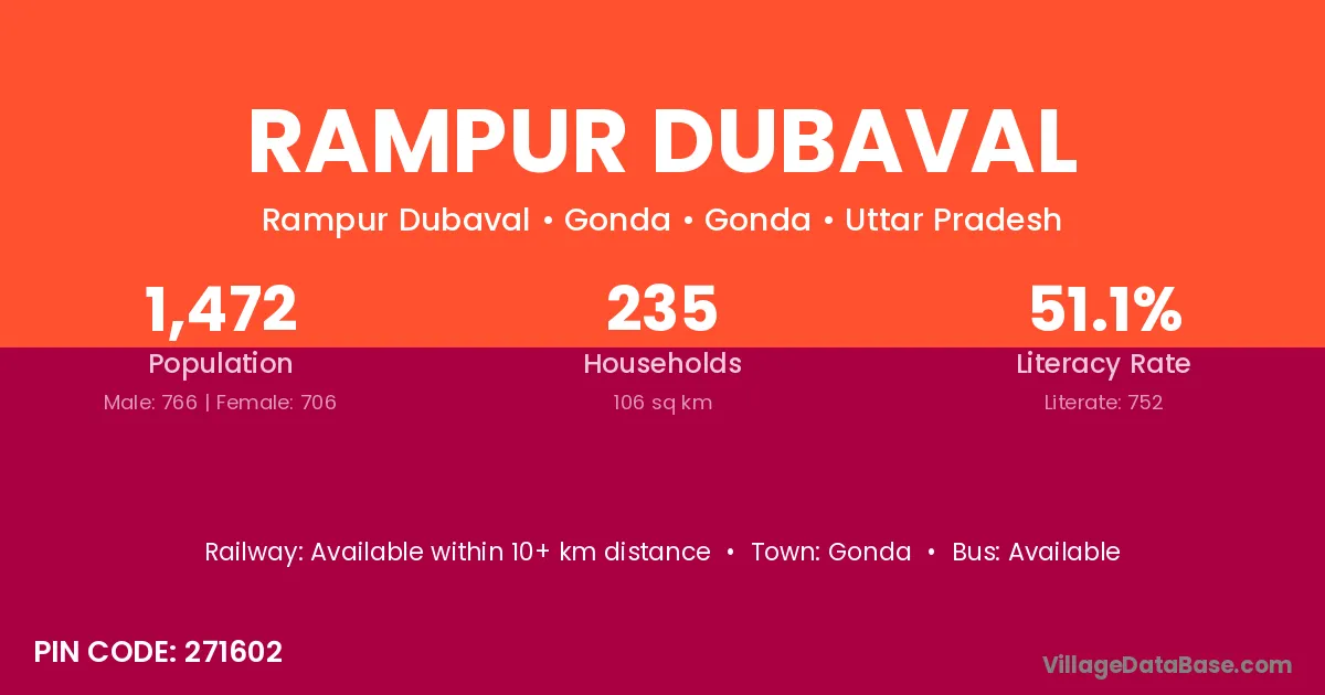 Gonda is the nearest town to Rampur Dubaval village for major economic activities