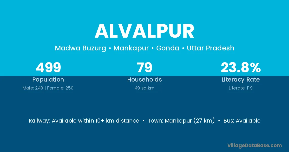 Mankapur (27 km) is the nearest town to Alvalpur village for major economic activities and is located approximately 27 km away.