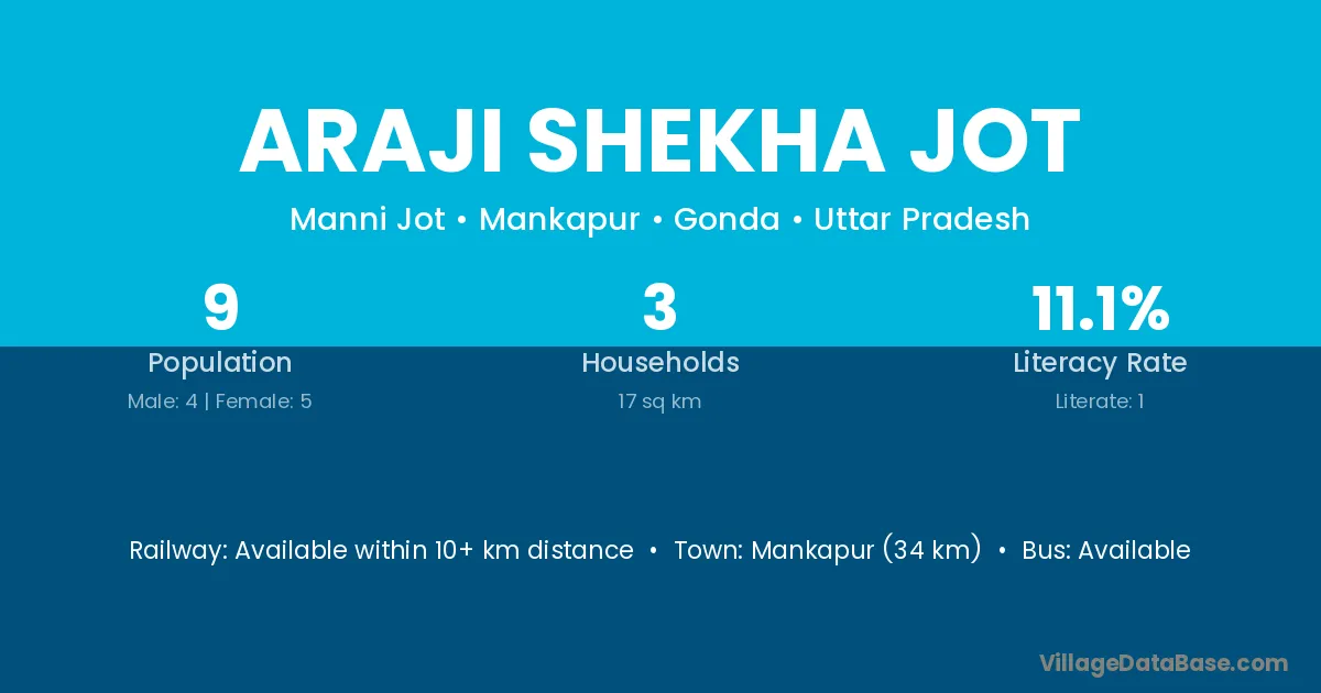 Mankapur (34 km) is the nearest town to Araji Shekha Jot village for major economic activities and is located approximately 34 km away.