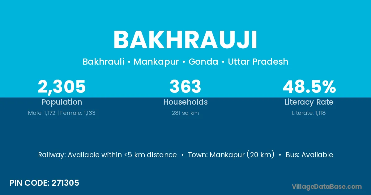 Mankapur (20 km) is the nearest town to Bakhrauji village for major economic activities and is located approximately 20 km away.