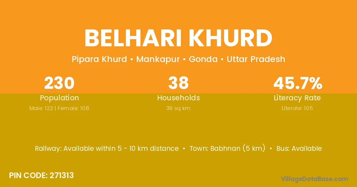 Babhnan (5 km) is the nearest town to Belhari Khurd village for major economic activities and is located approximately 5 km away.