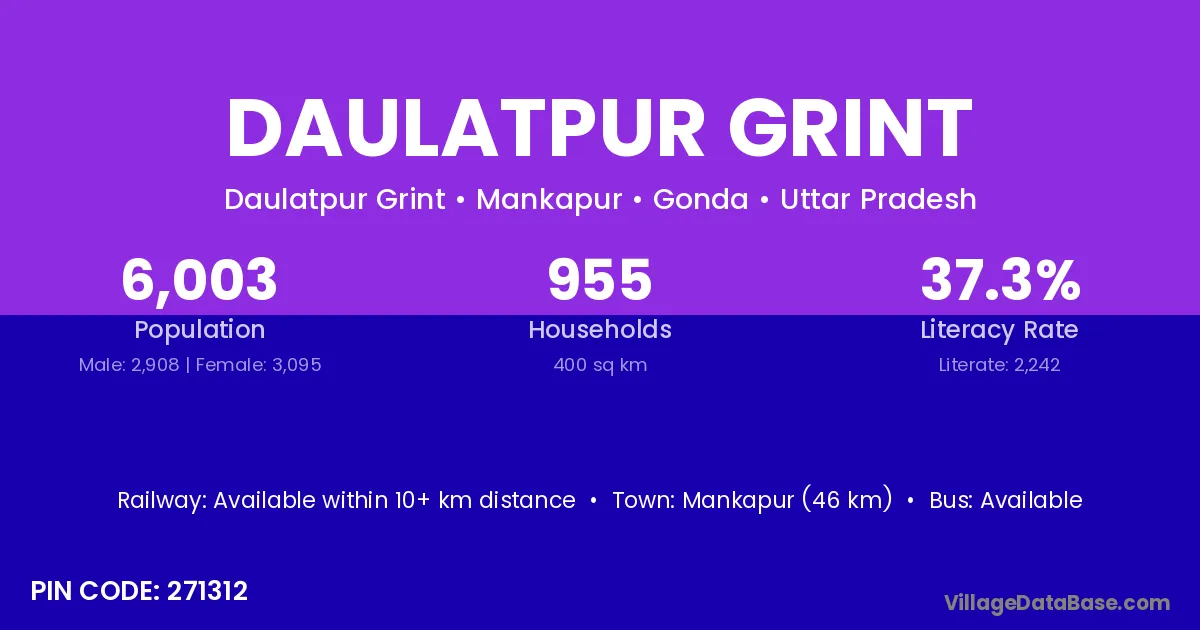 Mankapur (46 km) is the nearest town to Daulatpur Grint village for major economic activities and is located approximately 46 km away.