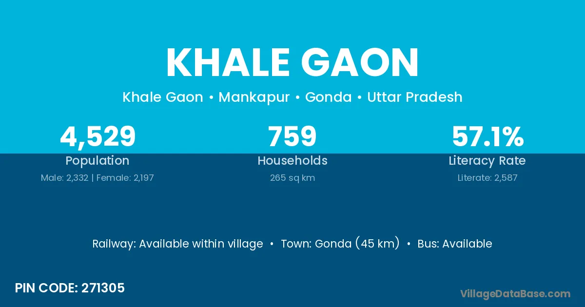 Gonda (45 km) is the nearest town to Khale Gaon village for major economic activities and is located approximately 45 km away.