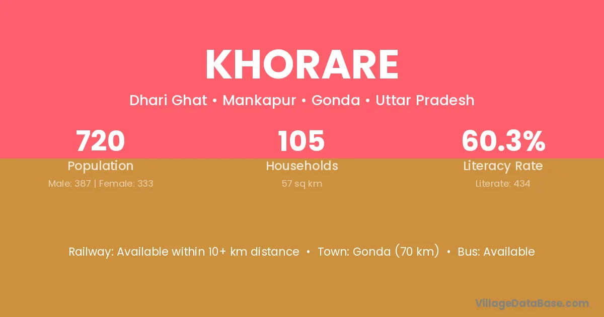 Gonda (70 km) is the nearest town to Khorare village for major economic activities and is located approximately 70 km away.