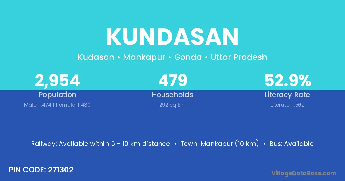 Mankapur (10 km) is the nearest town to Kundasan village for major economic activities and is located approximately 10 km away.
