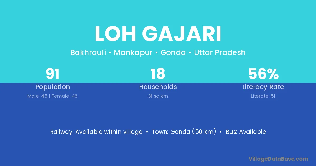 Gonda (50 km) is the nearest town to Loh Gajari village for major economic activities and is located approximately 50 km away.