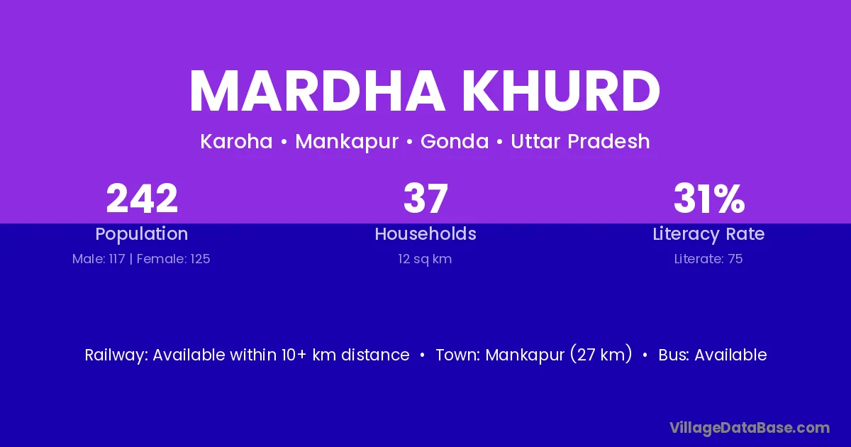 Mankapur (27 km) is the nearest town to Mardha Khurd village for major economic activities and is located approximately 27 km away.