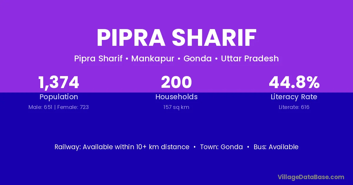 Gonda is the nearest town to Pipra Sharif village for major economic activities