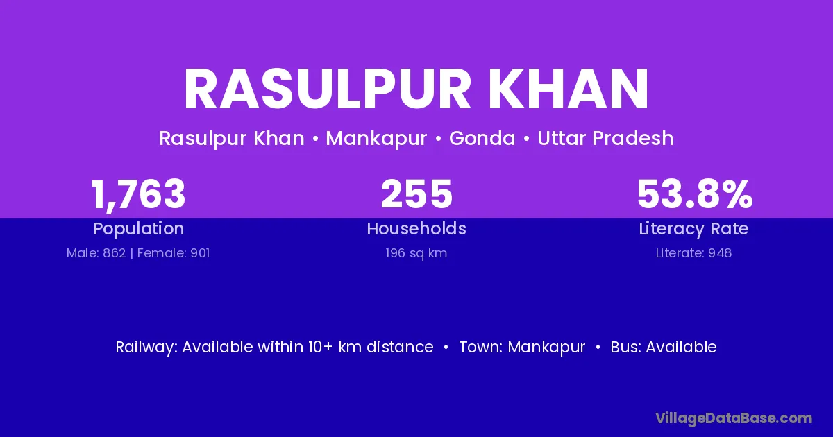Mankapur is the nearest town to Rasulpur Khan village for major economic activities