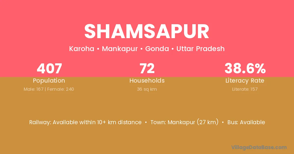 Mankapur (27 km) is the nearest town to Shamsapur village for major economic activities and is located approximately 27 km away.