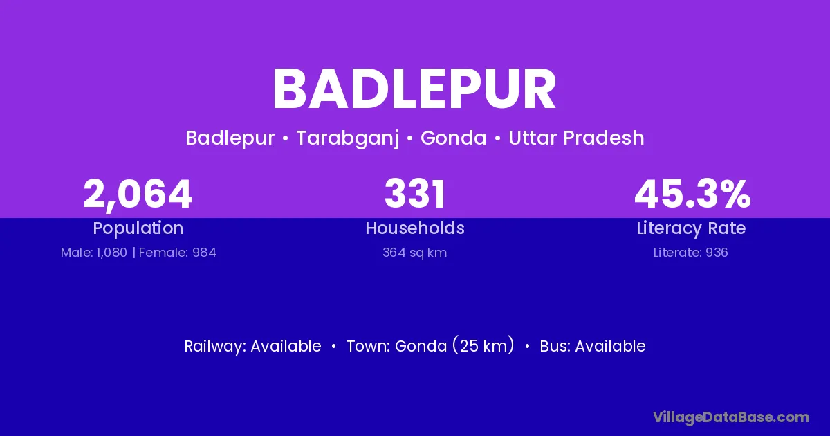 Gonda (25 km) is the nearest town to Badlepur village for major economic activities and is located approximately 25 km away.