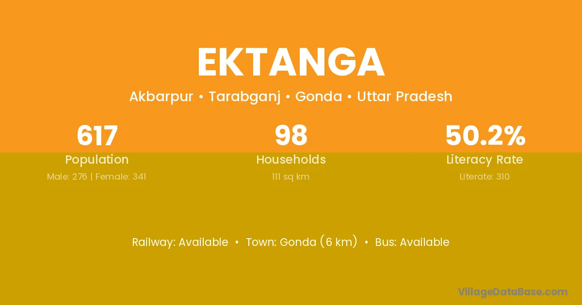 Gonda (6 km) is the nearest town to Ektanga village for major economic activities and is located approximately 6 km away.