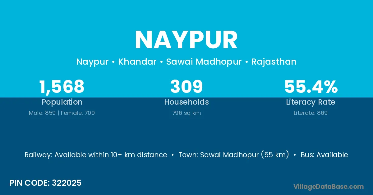 Naypur village has a total population of 1,329 people, of which 680 are males and 649 are females.