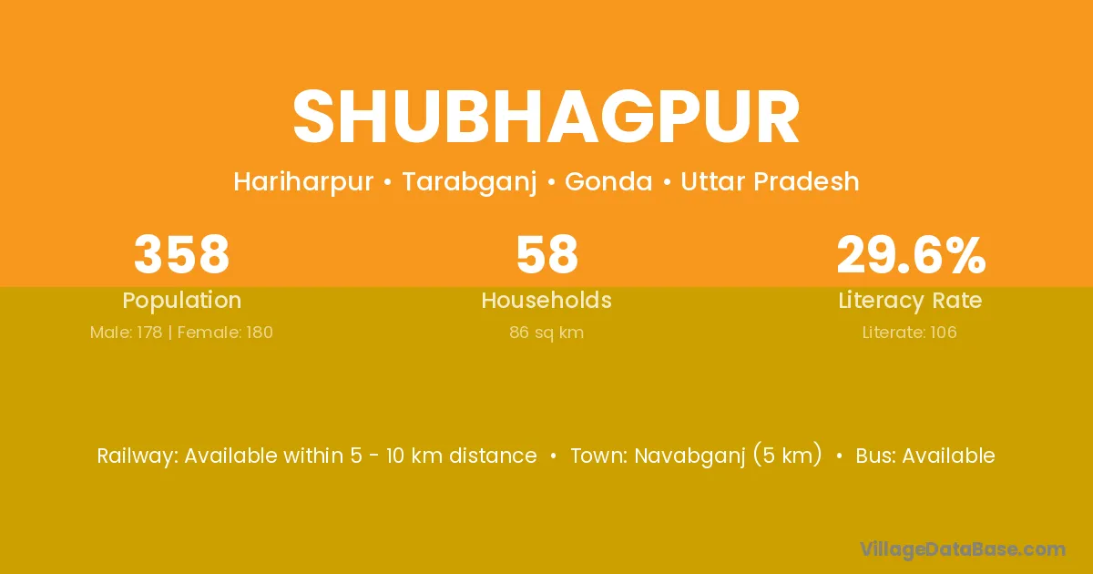 Shubhagpur village has a total population of 358 people, of which 178 are males and 180 are females.